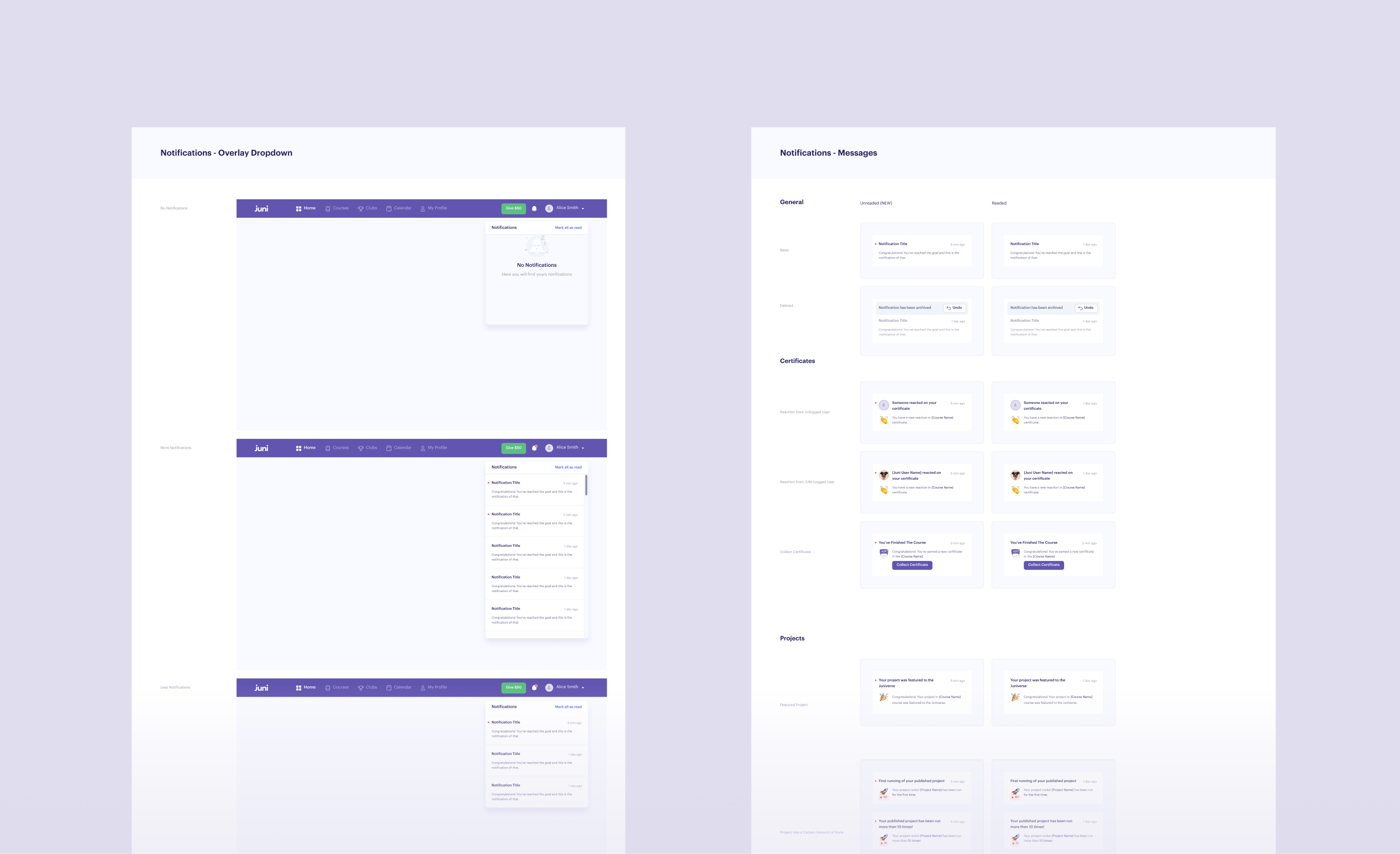 I joined the Juni midway through the creation of its first design system. The foundation had been started, but it lacked structure, scale, and practical guidance for multiple teams. My role was to strengthen, organize, and expand the system so it could support real product work at scale.