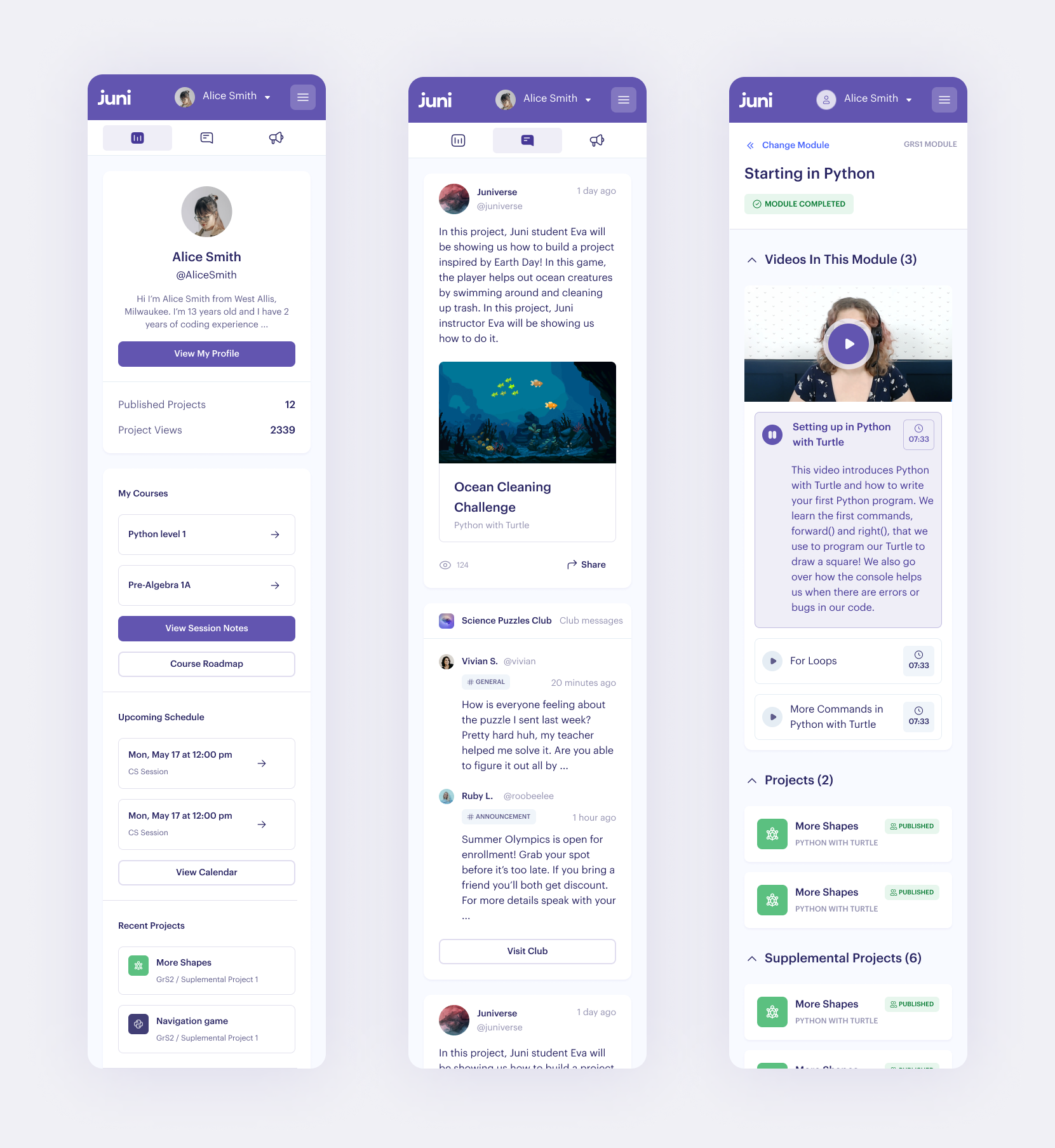 Profiles became an important aspect of the “Home” experience in that it gives students a place to showcase their work, clubs they’re a part of, and posts they’ve created. There are some extremely talented students on the Juni platform, and at a certian point they want to show their friends, parents, other teachers and even potentially future-employers things they’ve worked on.